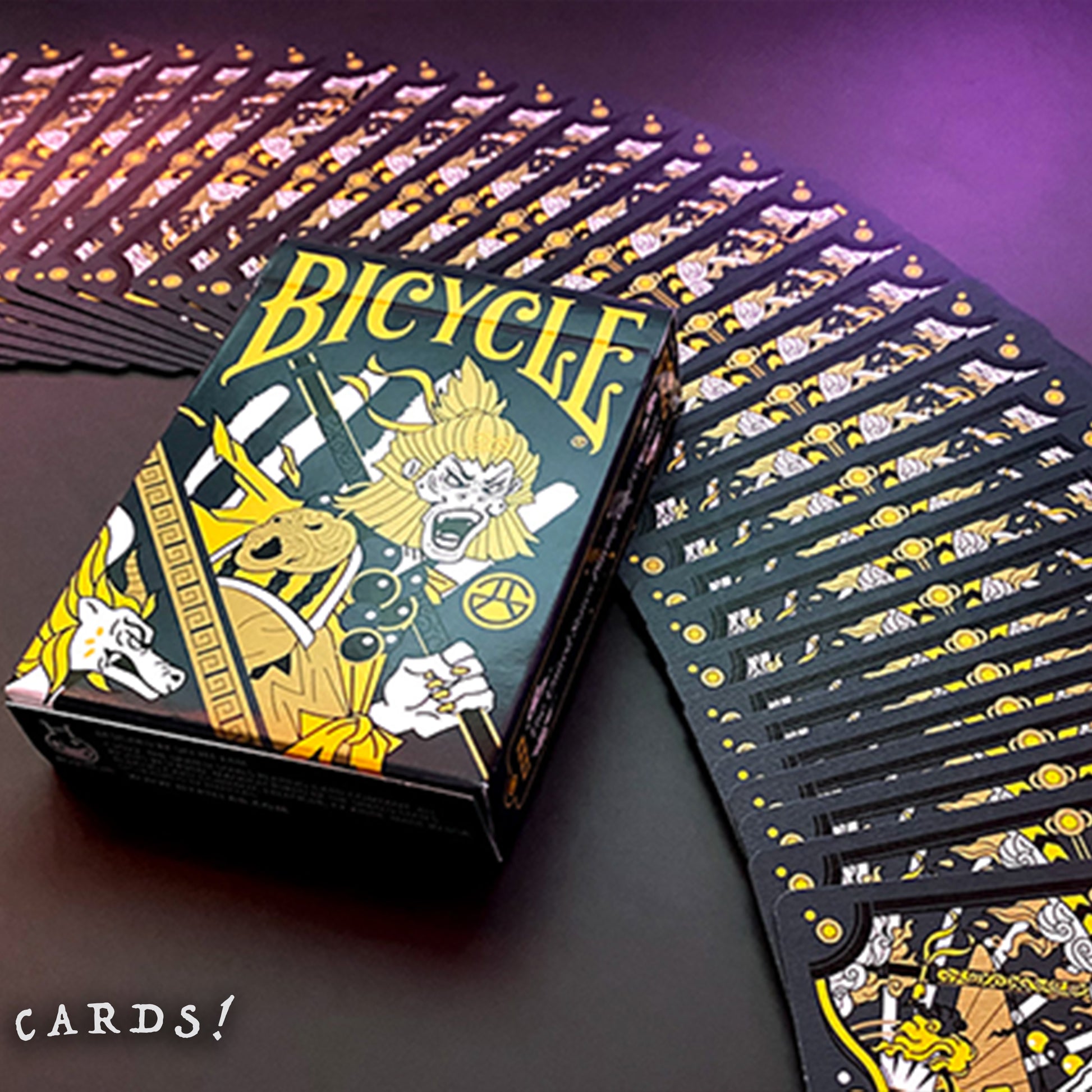 スタンダード バイシクル エディションは、プレミアム ストックに高級ゴールド メタリック インクで印刷されています。United States Playing Card Company によって製造されています。米国製。