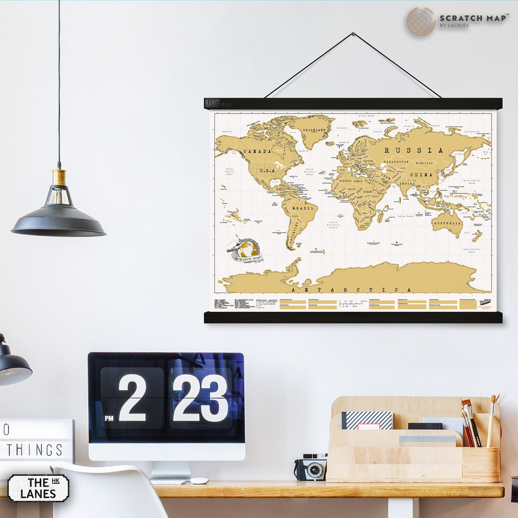 - Easily hang Luckies Scratch Map™ and other large format posters