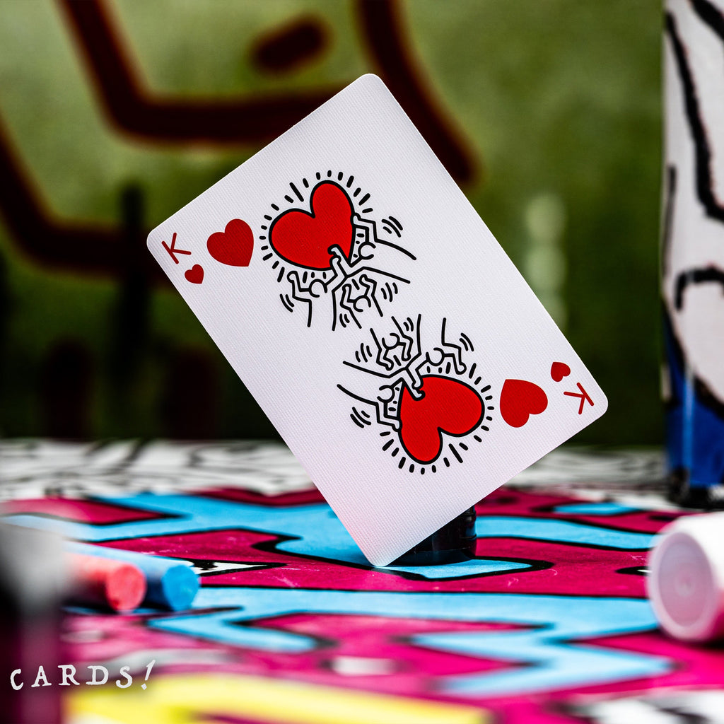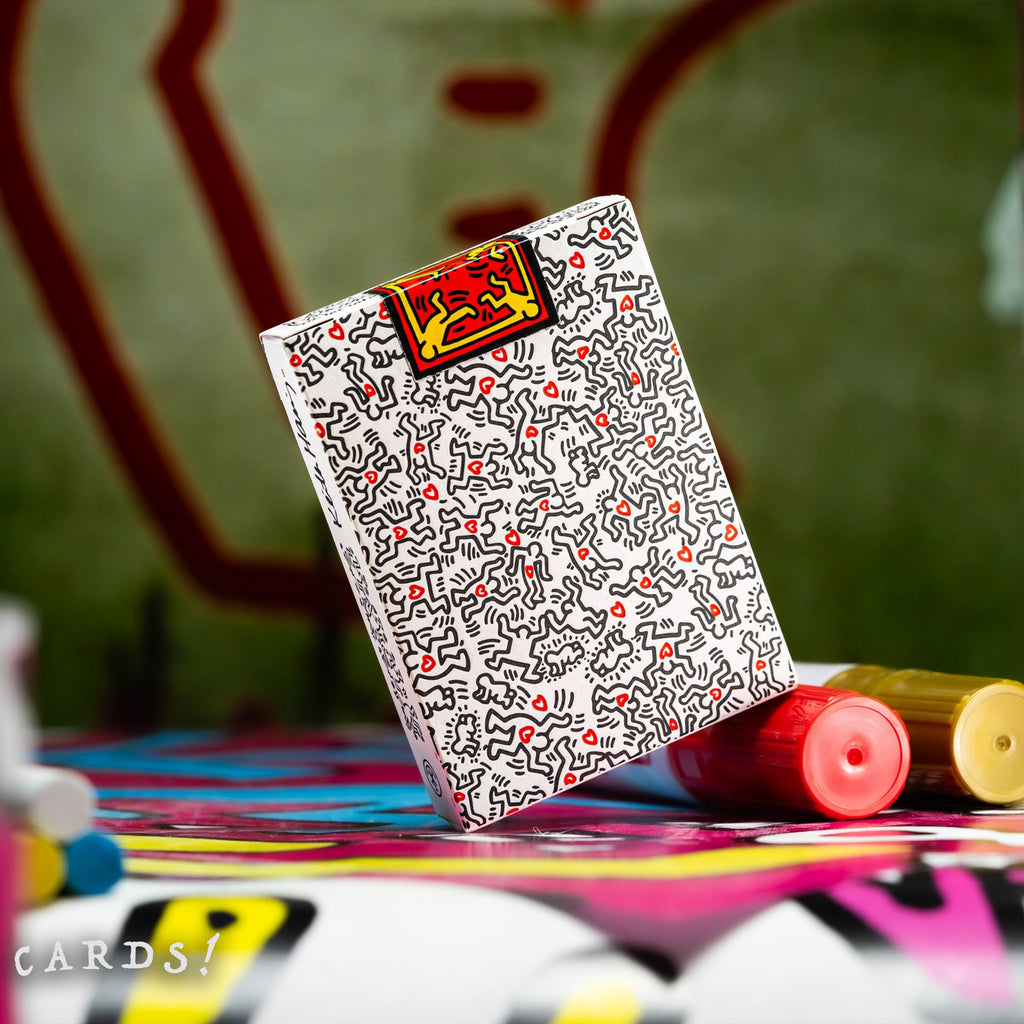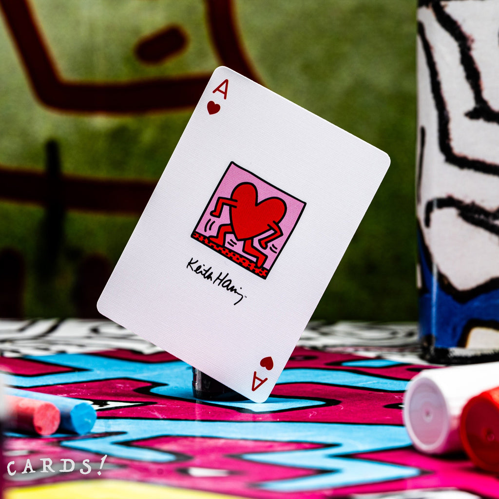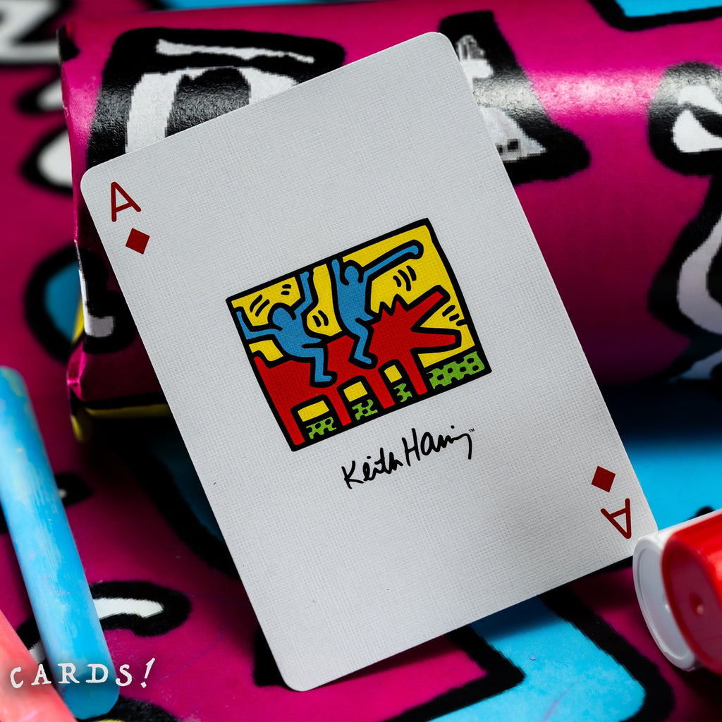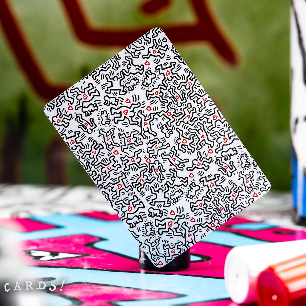 Step into the vibrant world of iconic artist Keith Haring with premium playing cards that showcase his contemporary pop art.