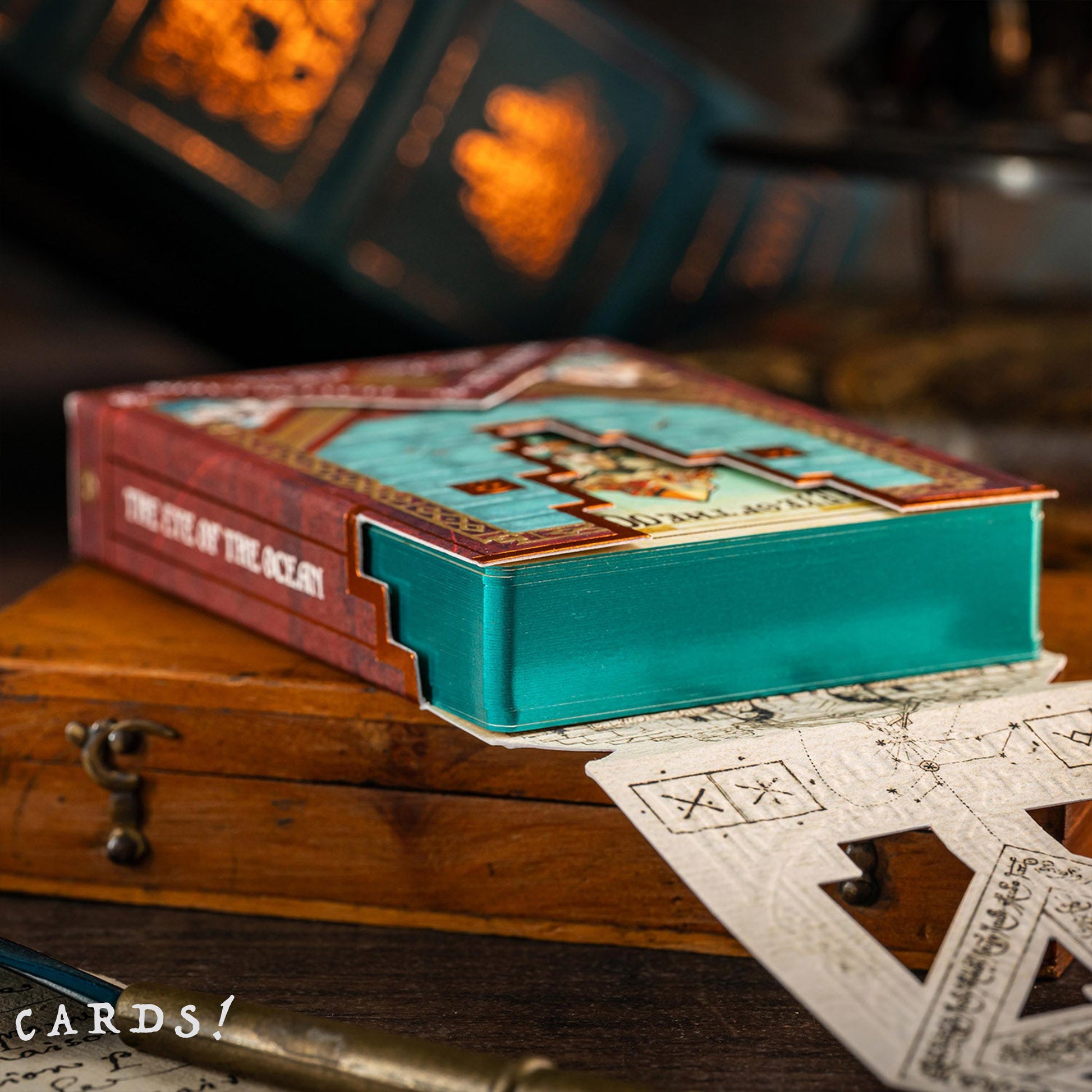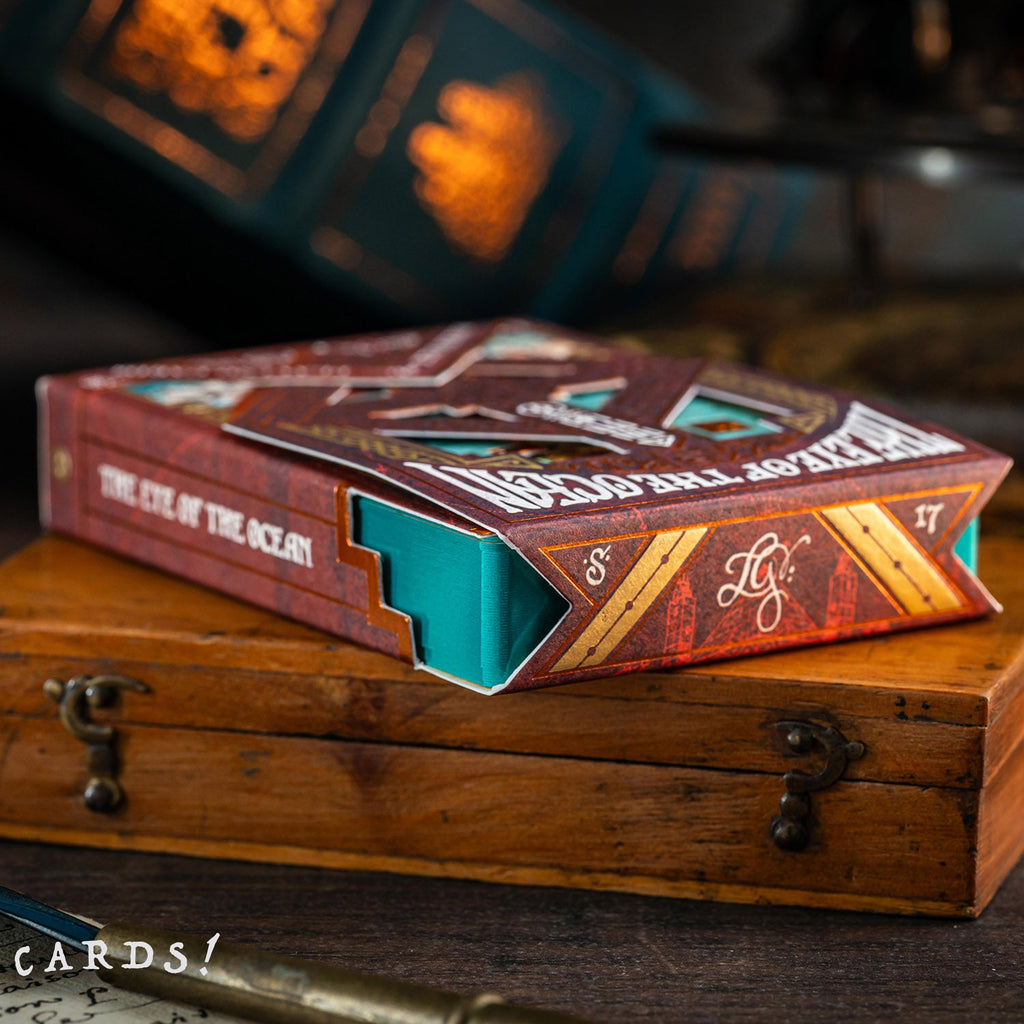 The Eye of the Ocean: Part II is the continuation of the archaeological adventure that began with the original series in 2021. This deck of cards showcases intricate designs inspired by the mysteries of the sea and celestial navigation. Featuring luxurious metallic foils, detailed illustrations, and an elegant fusion of antique maps, marine symbolism, and imaginative storytelling, each card is a work of art. Perfect for collectors and card enthusiasts, The Eye of the Ocean is more than just a deck—it's an immersive adventure wrapped in exquisite craftsmanship.