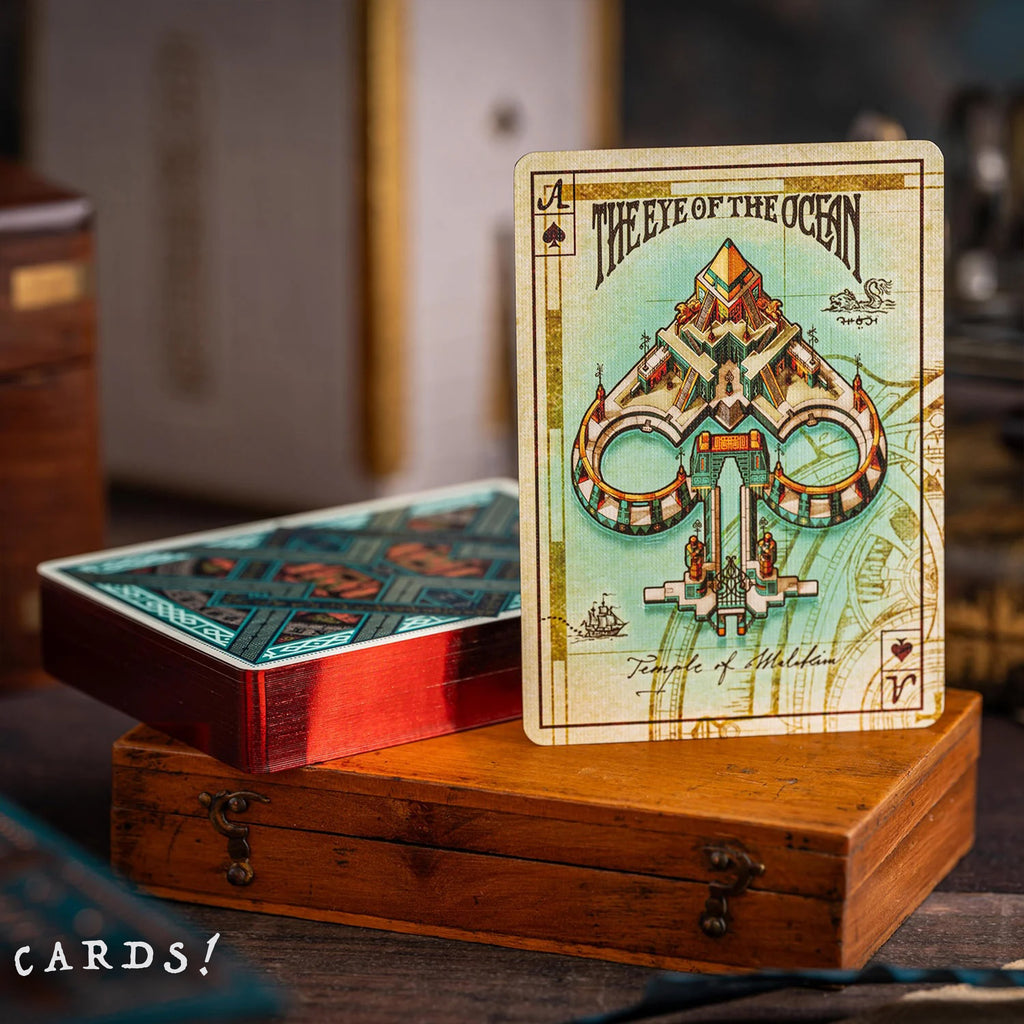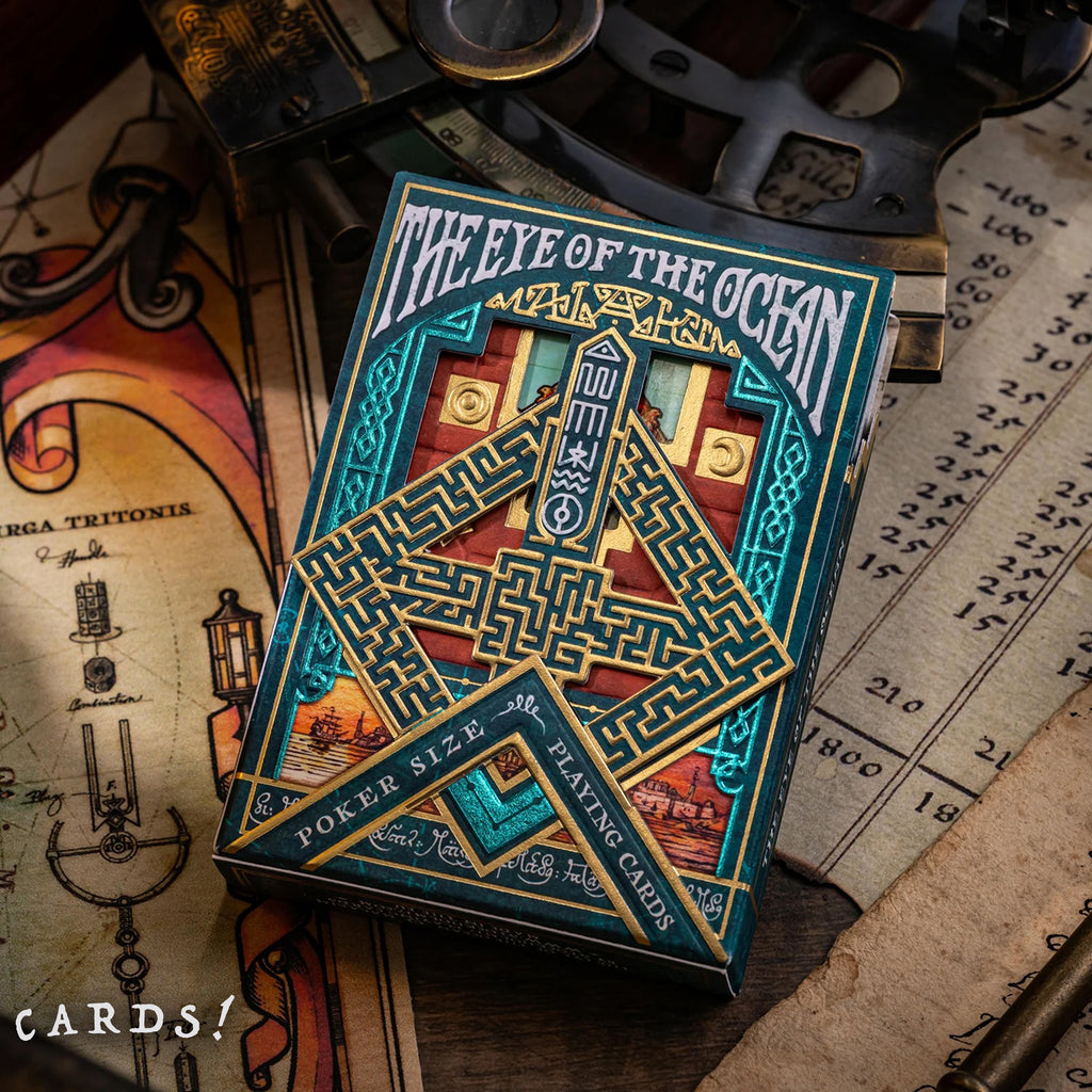 The Eye of the Ocean: Part II is the continuation of the archaeological adventure that began with the original series in 2021. This deck of cards showcases intricate designs inspired by the mysteries of the sea and celestial navigation. Featuring luxurious metallic foils, detailed illustrations, and an elegant fusion of antique maps, marine symbolism, and imaginative storytelling, each card is a work of art. Perfect for collectors and card enthusiasts, The Eye of the Ocean is more than just a deck—it's an immersive adventure wrapped in exquisite craftsmanship.