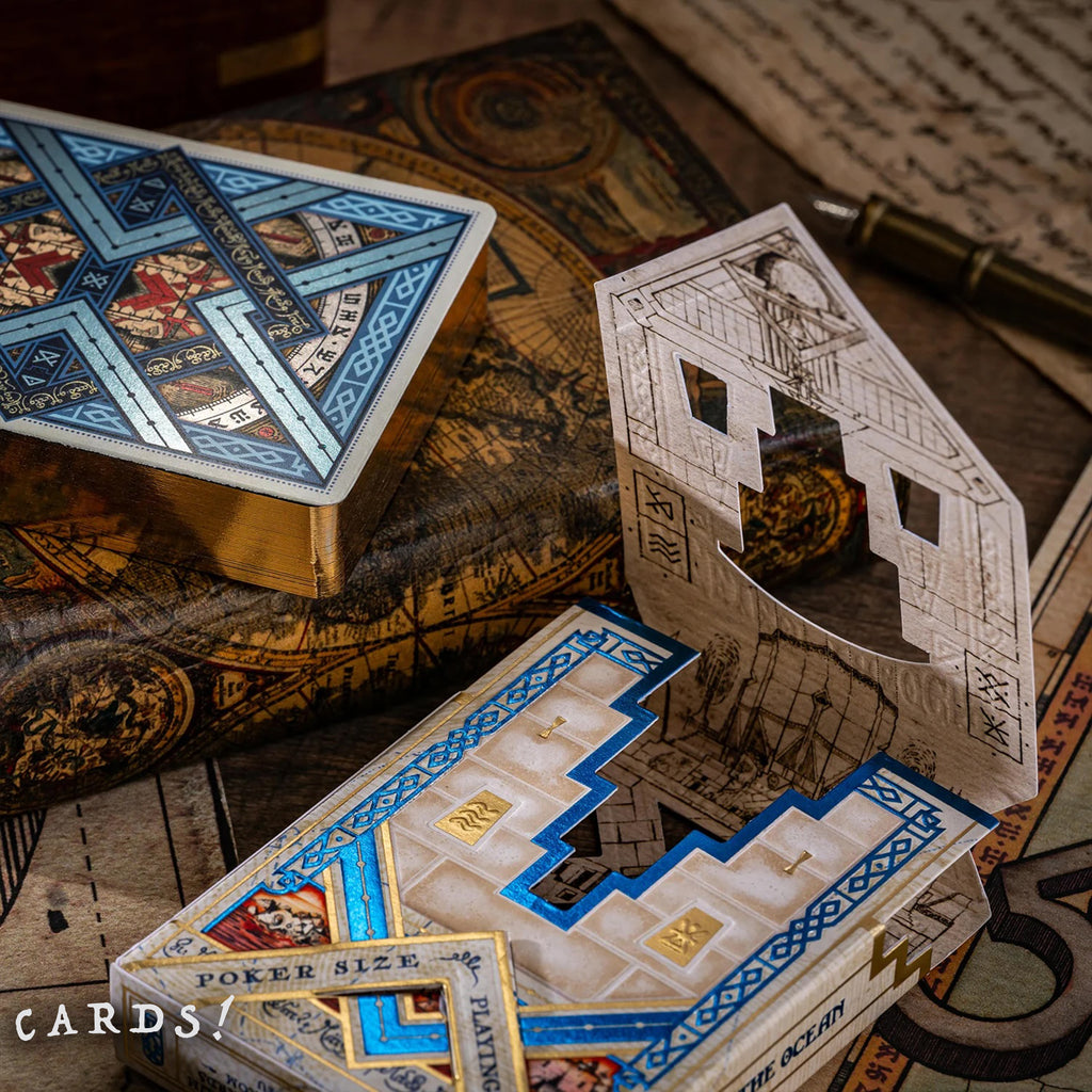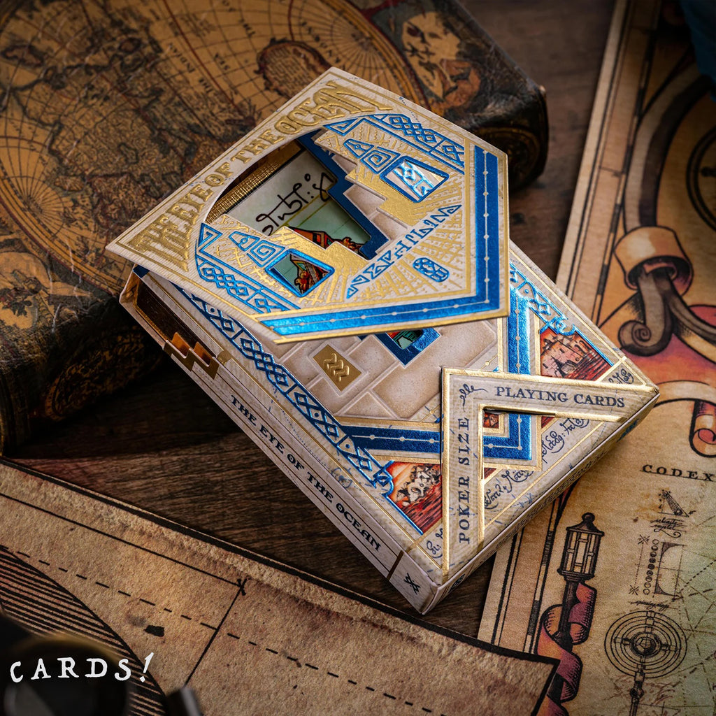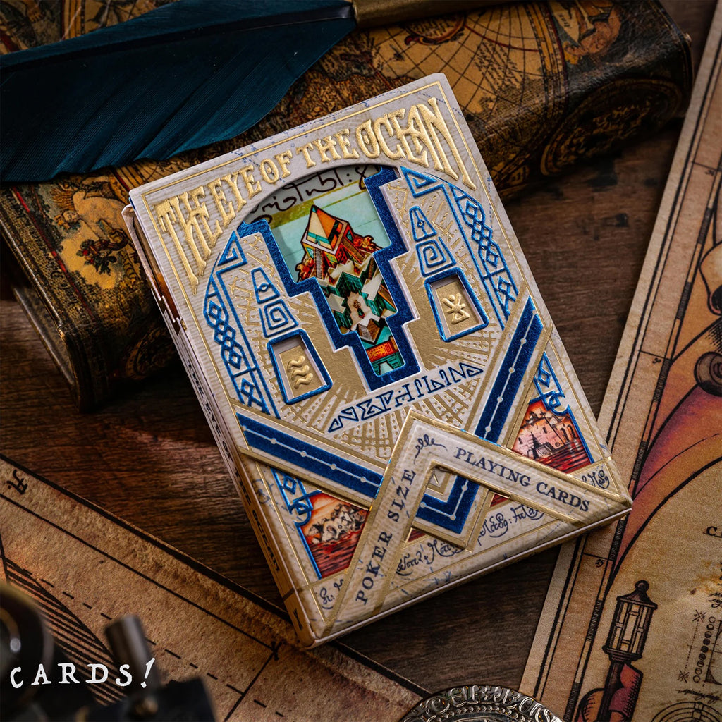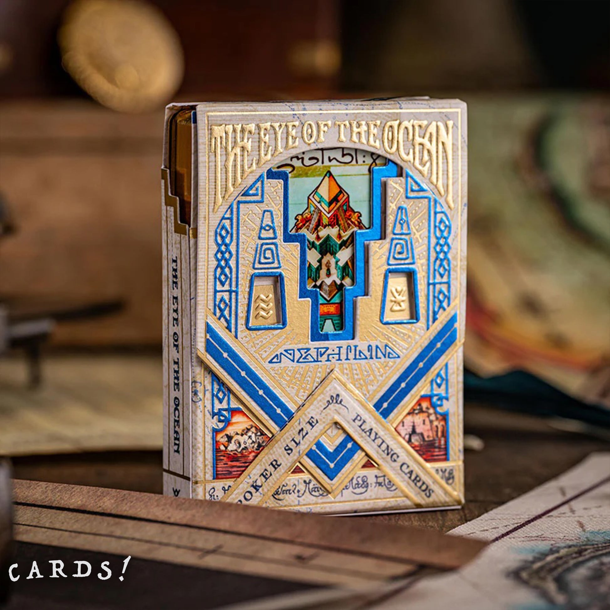 The Eye of the Ocean: Part II is the continuation of the archaeological adventure that began with the original series in 2021. This deck of cards showcases intricate designs inspired by the mysteries of the sea and celestial navigation. Featuring luxurious metallic foils, detailed illustrations, and an elegant fusion of antique maps, marine symbolism, and imaginative storytelling, each card is a work of art. Perfect for collectors and card enthusiasts, The Eye of the Ocean is more than just a deck—it's an immersive adventure wrapped in exquisite craftsmanship.