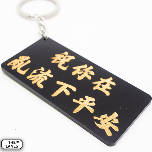 每個鑰匙圈均以雷射雕刻在壓克力板上,單獨手繪並切割成尺寸。所有流程均完全在內部完成。