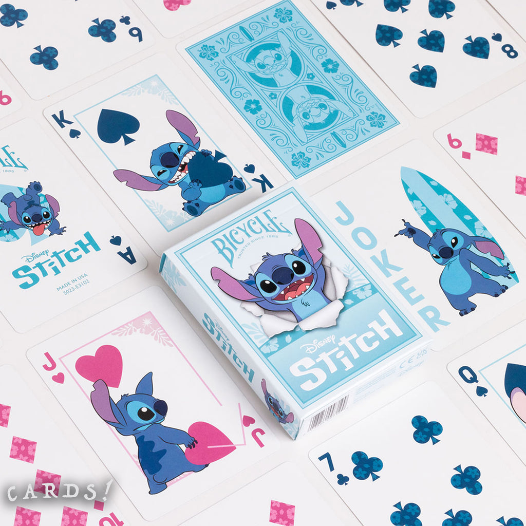 以 Disney Stitch 為靈感的 Bicycle 撲克牌,Stitch 的藝術品撕破了盒子,進入了我們的內心。將 Ohana 的夏威夷魔力帶回家給您的家人!實驗 626 正在對 54 張牌進行惡作劇,還有他的“boojiboo”天使牌在球場上!